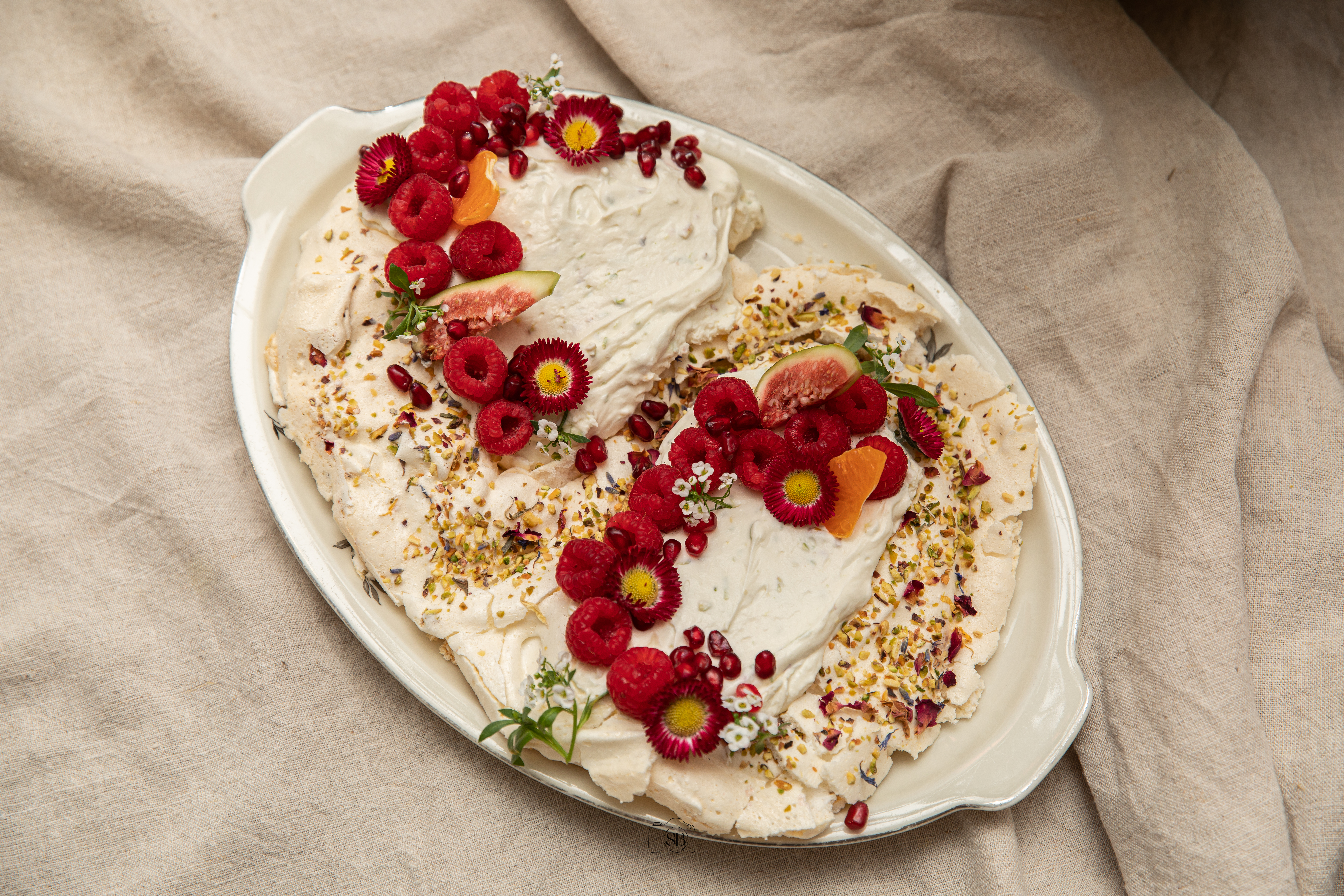 - Pavlova gevuld met mascarpone mousse van limoen en pistache noten.
