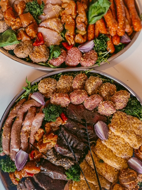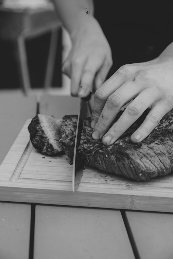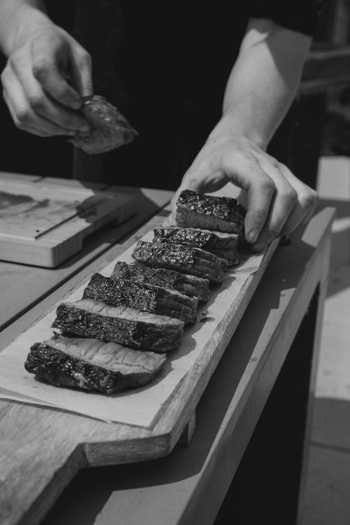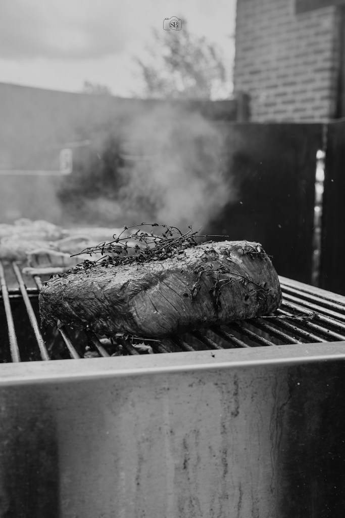 Vlees traag gegaard op de BBQ en aangesneden op buffet/ aan tafel.