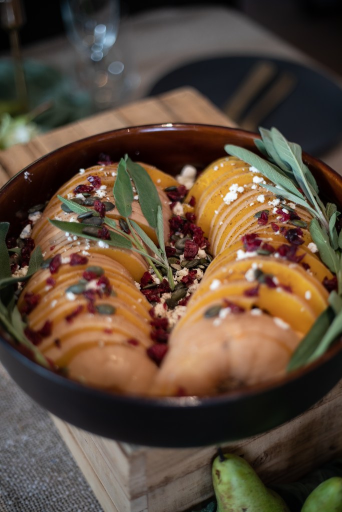Bijgerechten: Puree van aardappelen, bloemkool en truffel – Butternut pompoen met feta – Witloof met gekarameliseerde ui €23,50 per persoon
