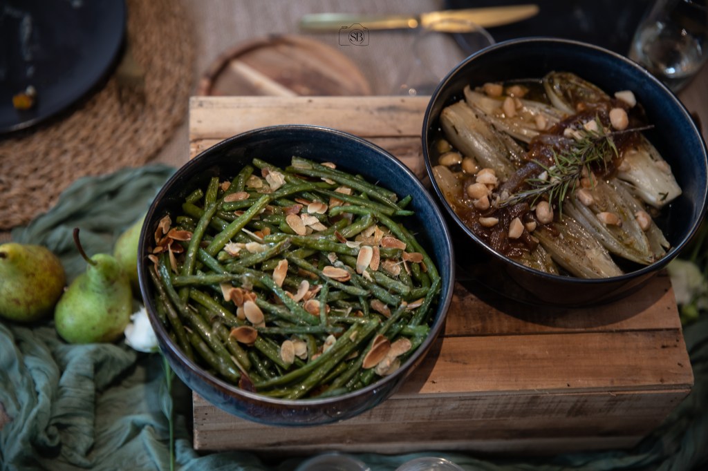 Bijgerechten: Worteltjes bovenop aardappelpuree met pastinaak – Boontjes in parmezaanse kaas – €23,50 per persoon
