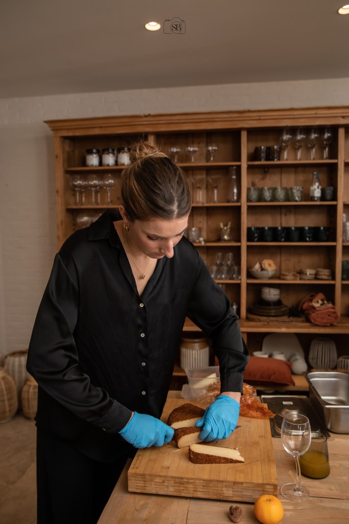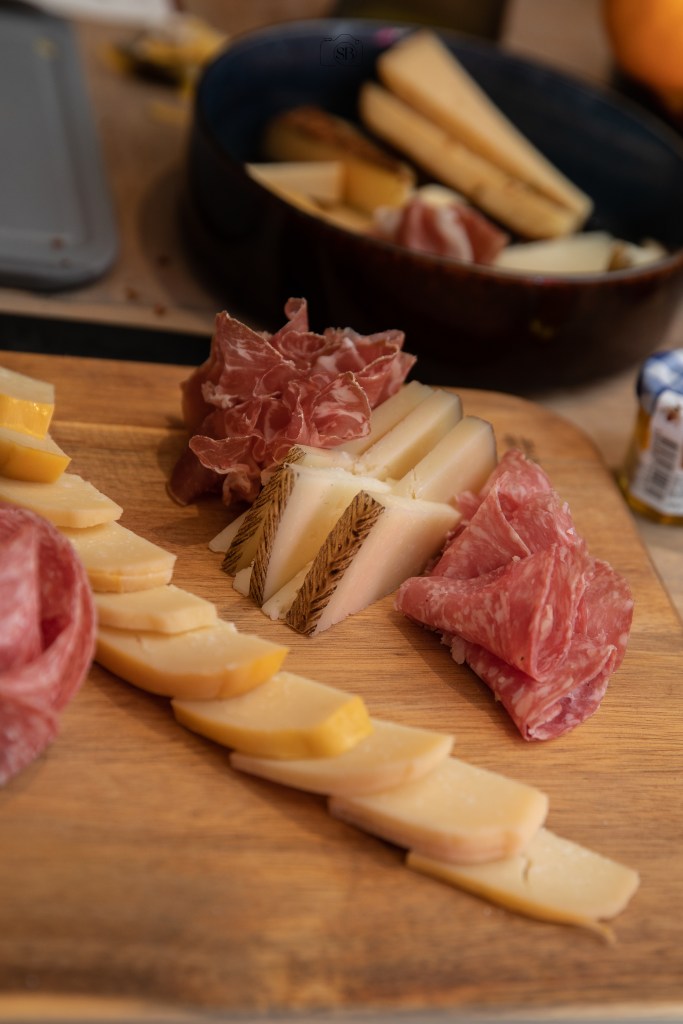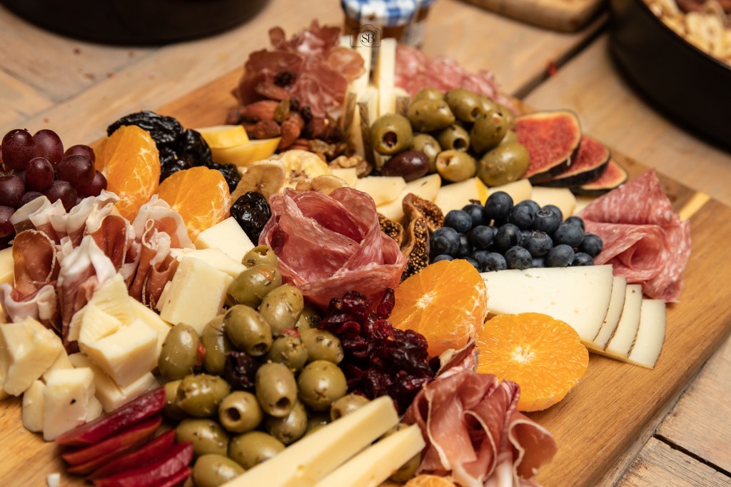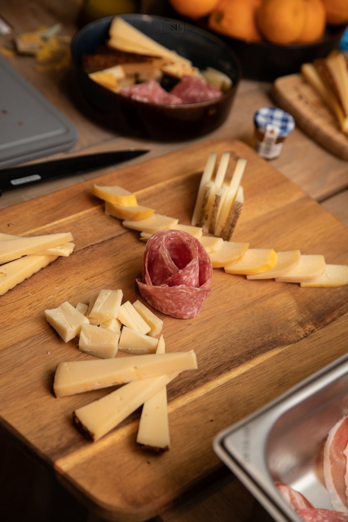 Je leert Manchego, Comté kaas en Klaartjes goude kaas op een leuke manier dresseren op je plank. Alle kazen die we gebruiken zijn harde kazen, omdat zachte kazen op kamertemperatuur zullen smelten en moeilijk te verplaatsen zijn. Niet zo handig dus. Je leert salami, spek en gerijpte ham op een originele manier vouwen. Daarna leer ik jullie hoe je de afwerking doet met vers en gedroogd fruit.